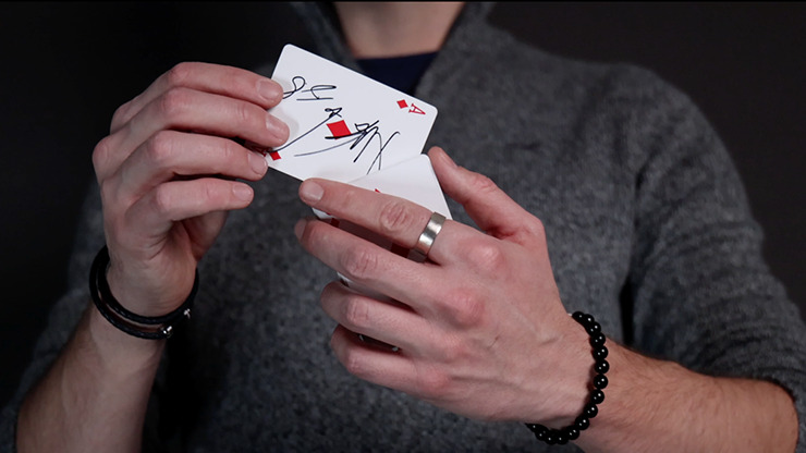 As soon as the spectator or the magician pushes the card in the deck, the card jumps in the first position.