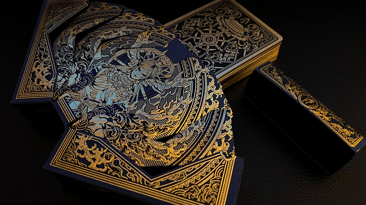 Asura Deluxe Blue Playing Cards is a tribute to mythology and timeless design, inspired by the Asura realm from Hindu and Buddhist cosmology. Representing themes of desire, conflict, and ambition, this deck merges traditional playing card elements with detailed, mythology-inspired artwork. Building on the foundation of the Asura Classic Edition, the deluxe edition introduces premium upgrades that elevate both the visual and tactile experience, making it a standout choice for collectors seeking luxury craftsmanship and intricate detail.