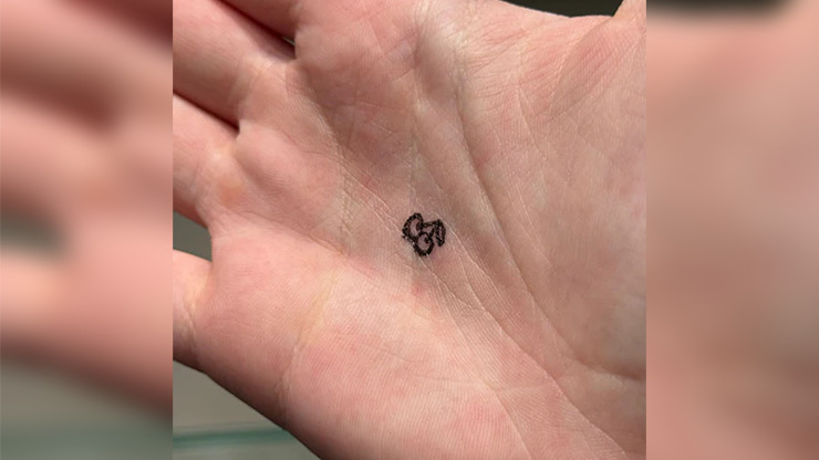 Now, with the Cherry Stamp, you can add a twist to your Double Cross routine by making a small cherry drawing vanish from your hand and reappear directly in your spectator’s palm.