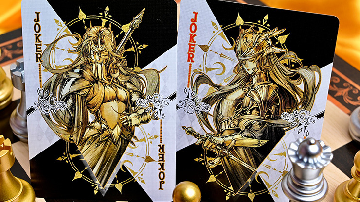 CHESS deck series is set in the 17th-century Baroque period of the Holy Roman Empire, creating a world view of a mirror-interwoven twin royal courts. The White Court is modeled after the Prague Crystal Palace, featuring Rococo-style gilded decorations and colorful glass domes; the black court is inspired by the Bratislava Fortress, presenting a dual image of dark red velvet curtains and bronze relief structures in the Gothic style. The two female chess players respectively control the two power systems of light and chaos, projecting a dual metaphor of royal power struggles and theological games in the chessboard confrontation.