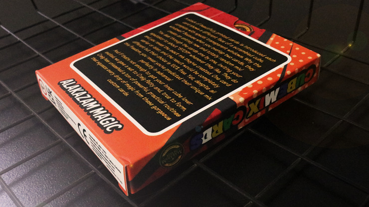 A stack of beautifully printed cards is introduced, each card shows a different face of a scrambled cube, complete with special transparent windows. Why the windows? Because when you overlap two cards, they create an entirely new and totally random mix!