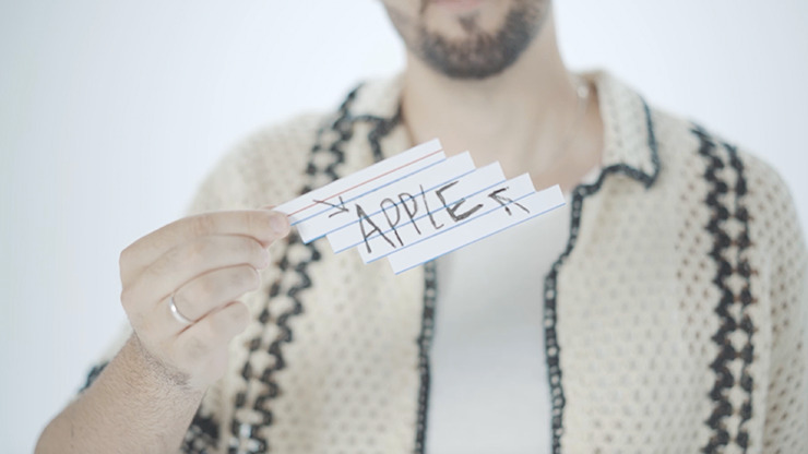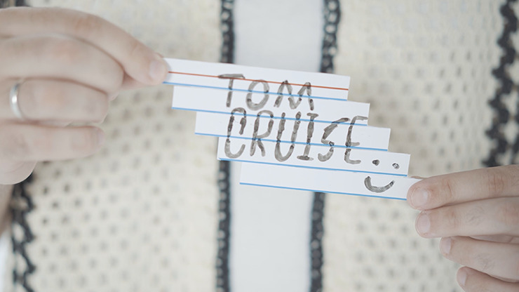 An unreadable prediction written on an index card impossibly morphs into the word the spectator was thinking, leaving behind an impossible object – a melted index card – that the spectator can keep as a souvenir.