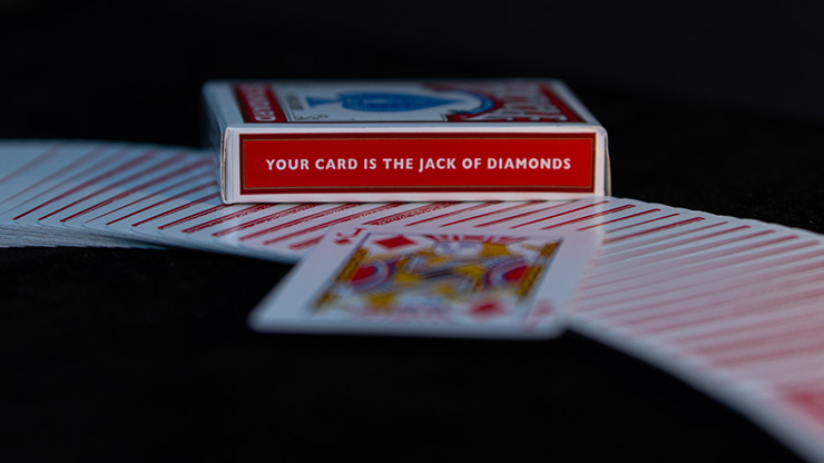 “Your card is the [Card Name]” – bold, clean text that’s easy to glimpse when you need it, yet subtle enough to stay unnoticed until the reveal.