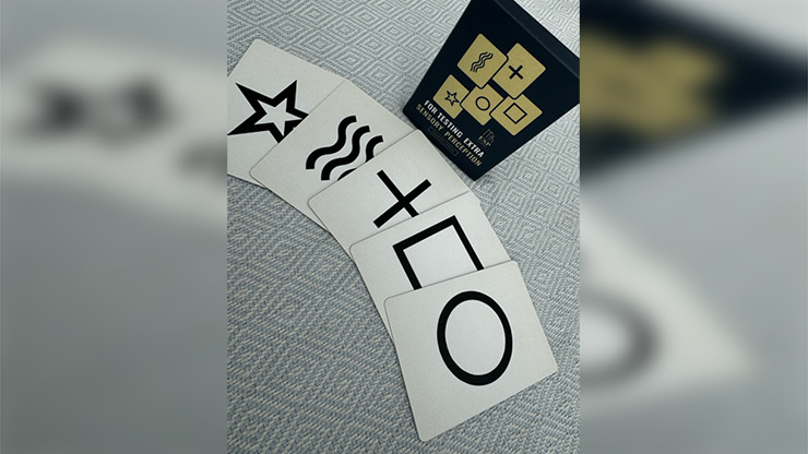 The 25 symbol cards and three tutorial / history cards are included in a customprinted, dark blue thin tuck case, and also included is Liam Montier’s ‘Protocol5’ – a startling routine where a spectator shuffles some ESP cards, deals themin a line, and then FREELY CHOOSES five more symbols, which turn out tomatch the ones they laid out first!