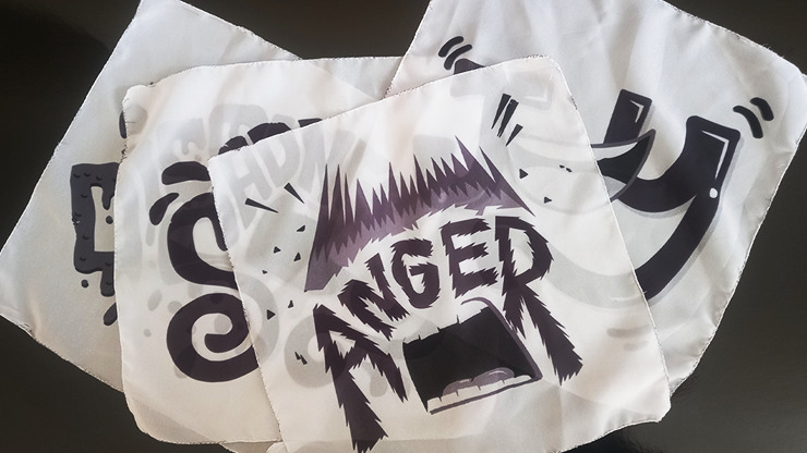 With four monochromatic scarves, each representing an emotion (disgust, anger, sadness and joy), you invite your audience on an emotional journey. Using a change bag (not included), the scarves absorb the audience’s energy and… transform into vibrant colors that represent each emotion!