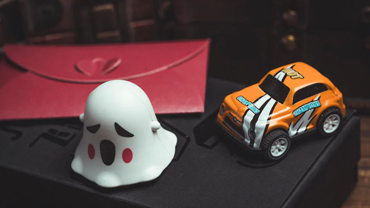 The principle behind Jumper is extremely clever, allowing you to perform it in many different ways, adding variety to your routine. In addition to the rubber bands, toy ghost, and toy car included in the product, you can use other items to trigger the prop and create your own unique routines based on those objects.