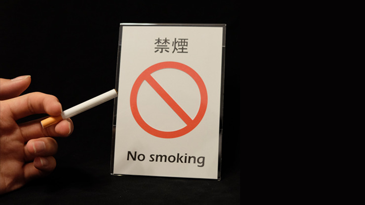 The magician shows a non-smoking sign in a plastic POP stand. Say something like, “I’ve been quitting smoking lately, but sometimes I give in to my desires,” and make a gesture to grab an illustration of a cigarette. If you slide your hand upwards as it is, a real cigarette will appear in your hand. Of course, the picture of a cigarette has disappeared from the sign.