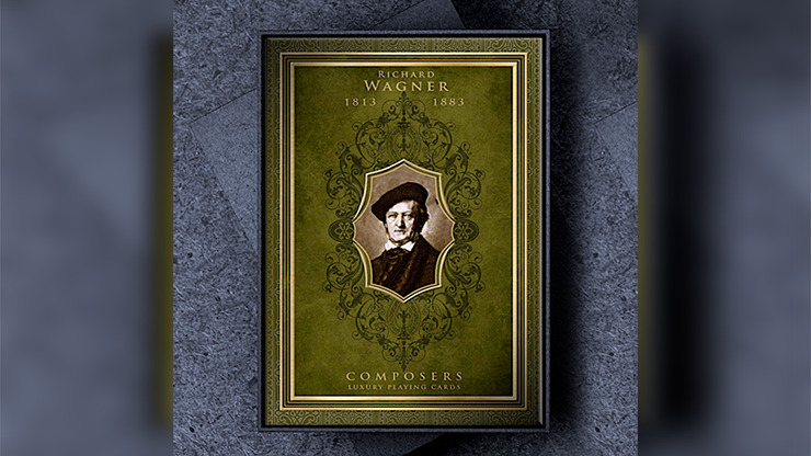 Richard Wagner Playing Cards, designed by SixtyFourPlayingCards, is a unique and elegant deck of playing cards for collectors, where the protagonists one of the greatest Composers of classical and symphonic music of all time. The theme of Wagner is dark green and will be the color of the theme of the tuck box, the back of the cards and the color theme of court cards.