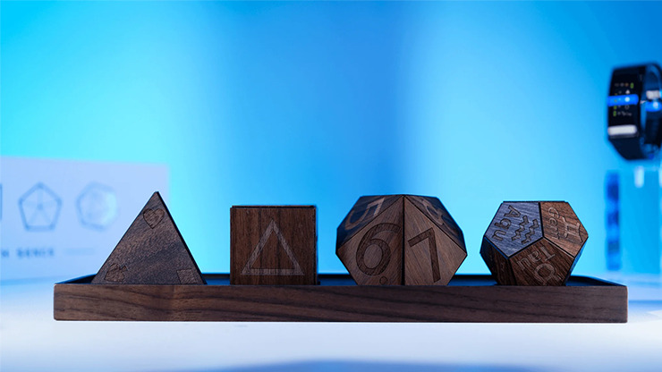 The dice feature a hidden electronic chip and are carefully weighted to feel ordinary to the touch, even when examined by the audience. The system uses a fitness tracker-style wristband as a wearable display, offering both visual and vibrational feedback.